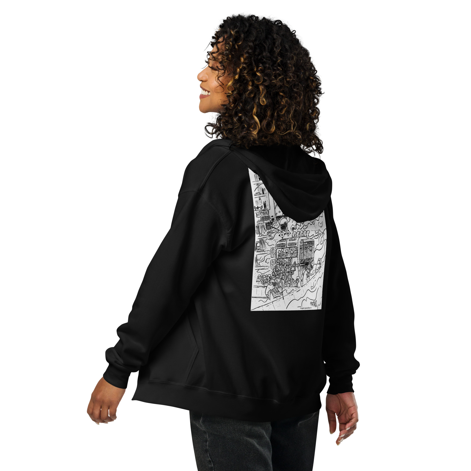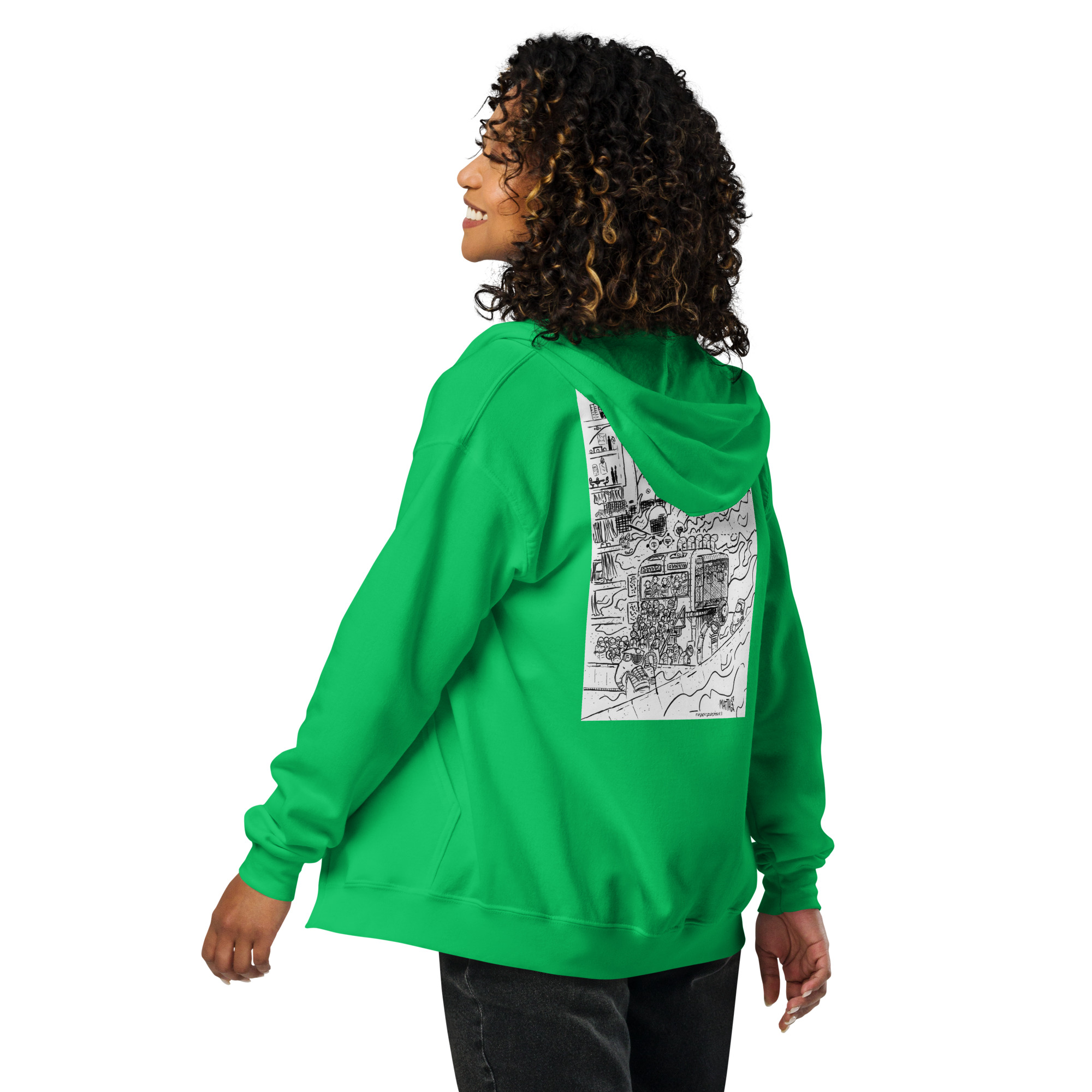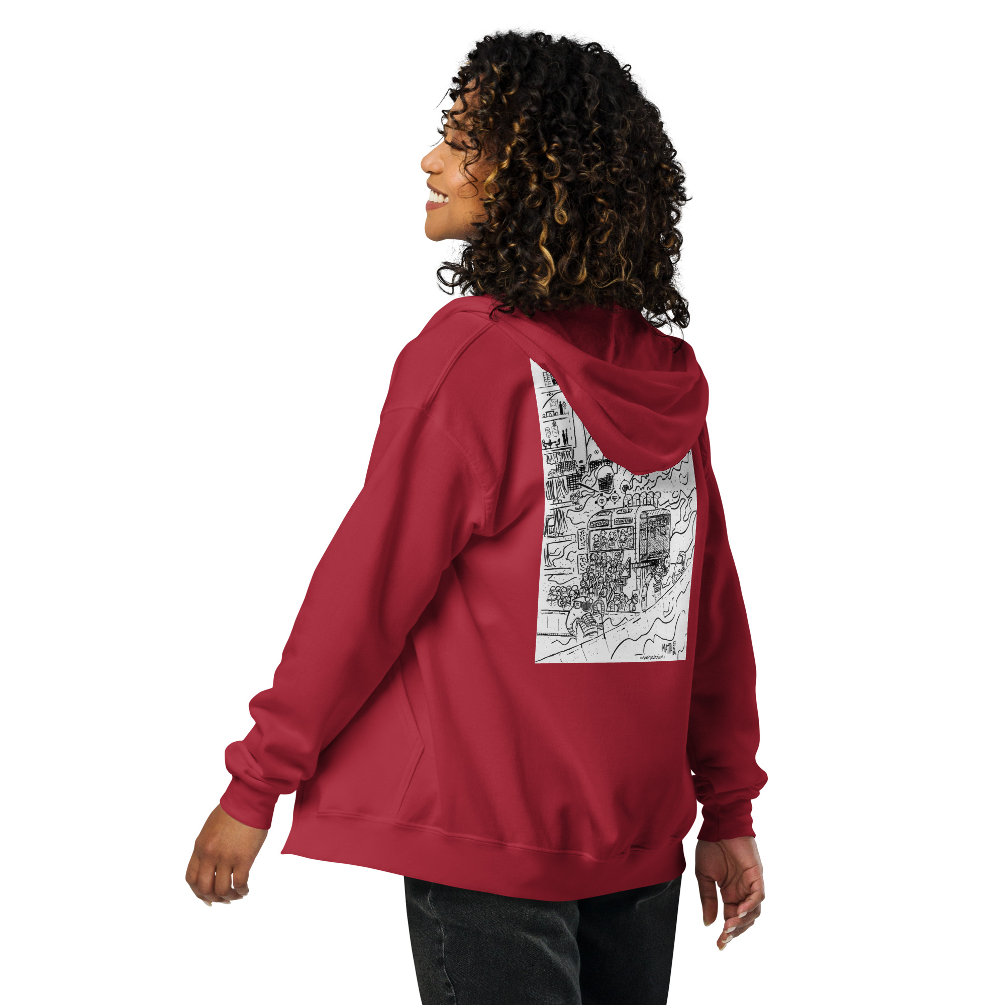 Designed with style and comfort in mind, this hoodie will quickly become your new favorite. It’s made from soft fleece inside and outside, with a sturdy metal zipper, convenient front pockets, and a hood with color-matched drawstrings.