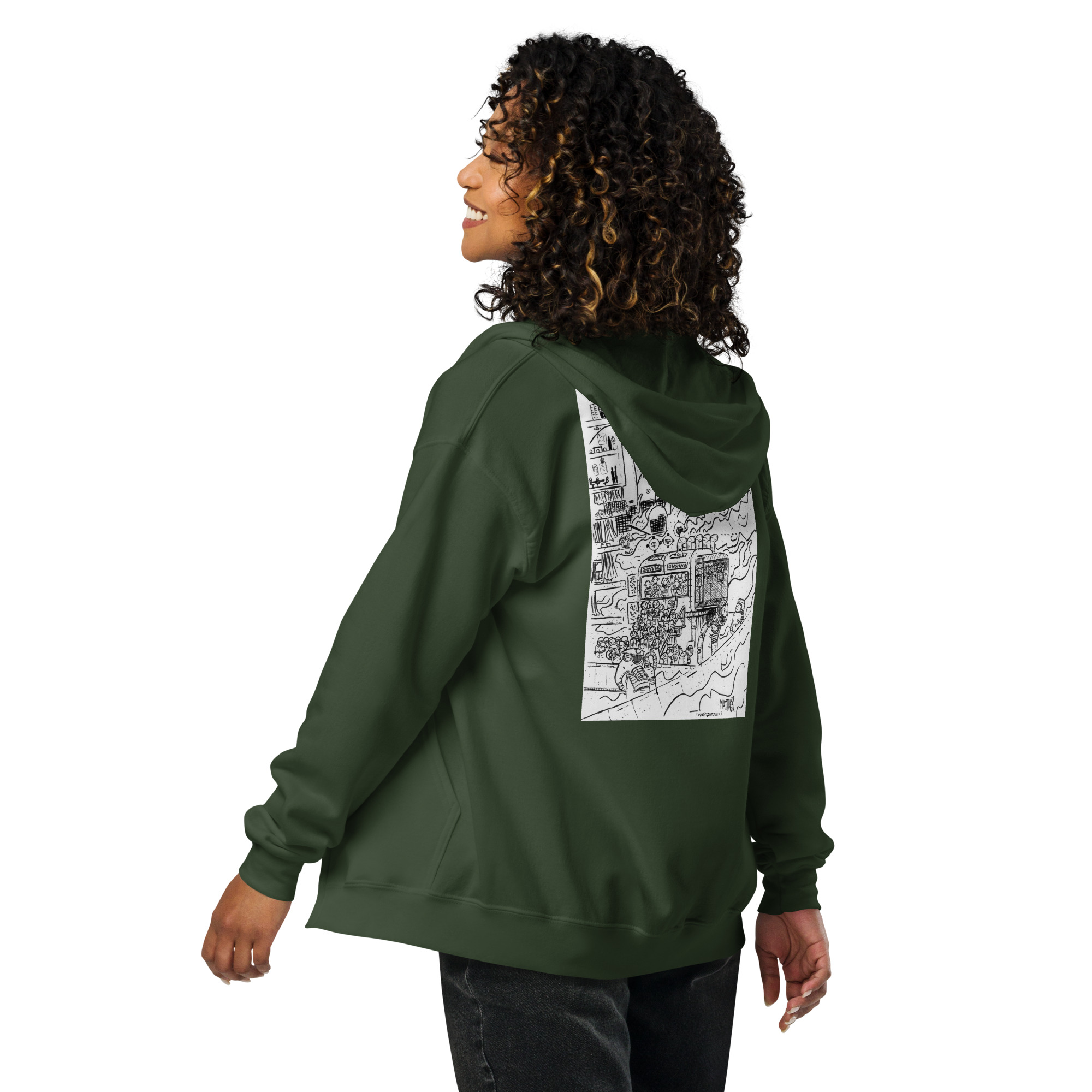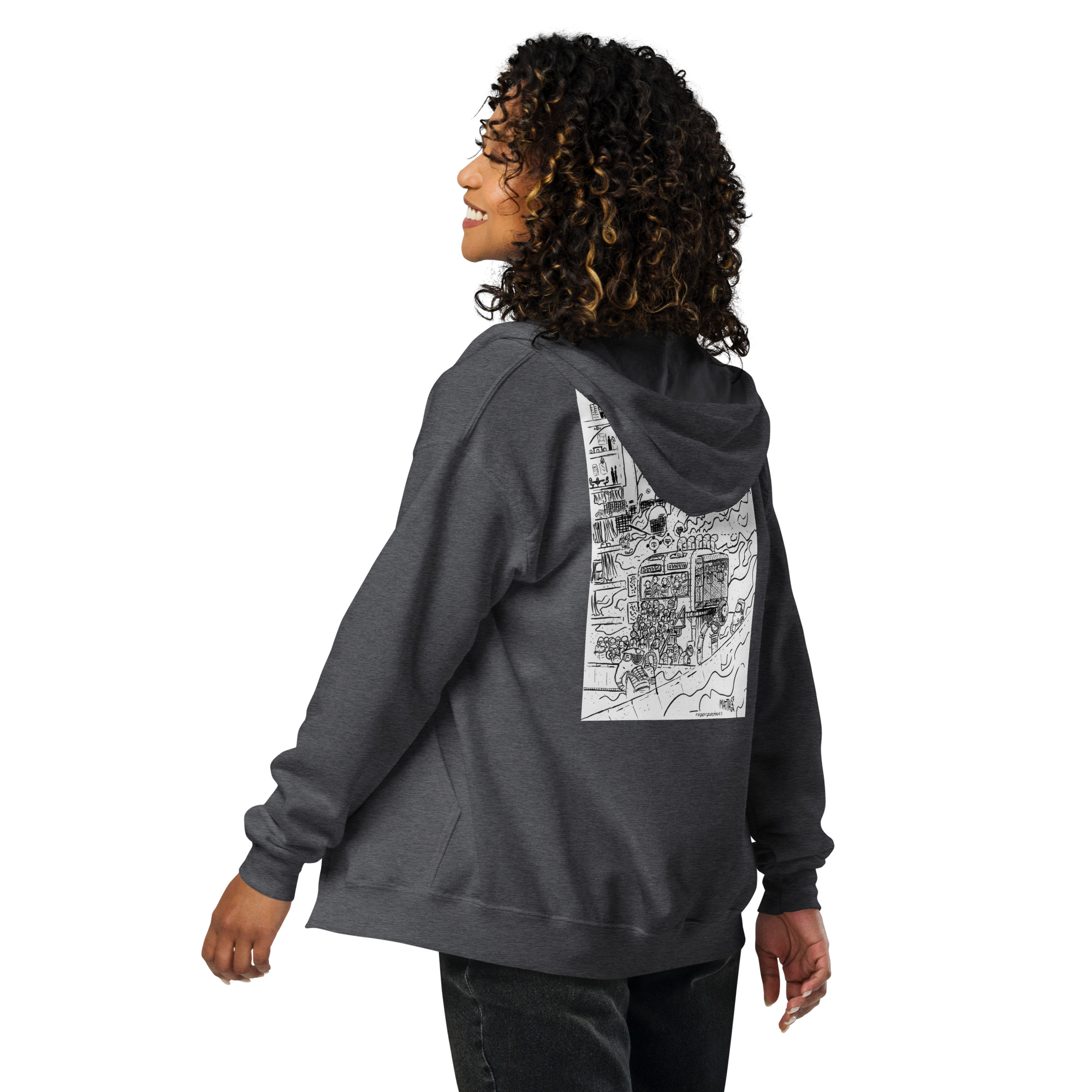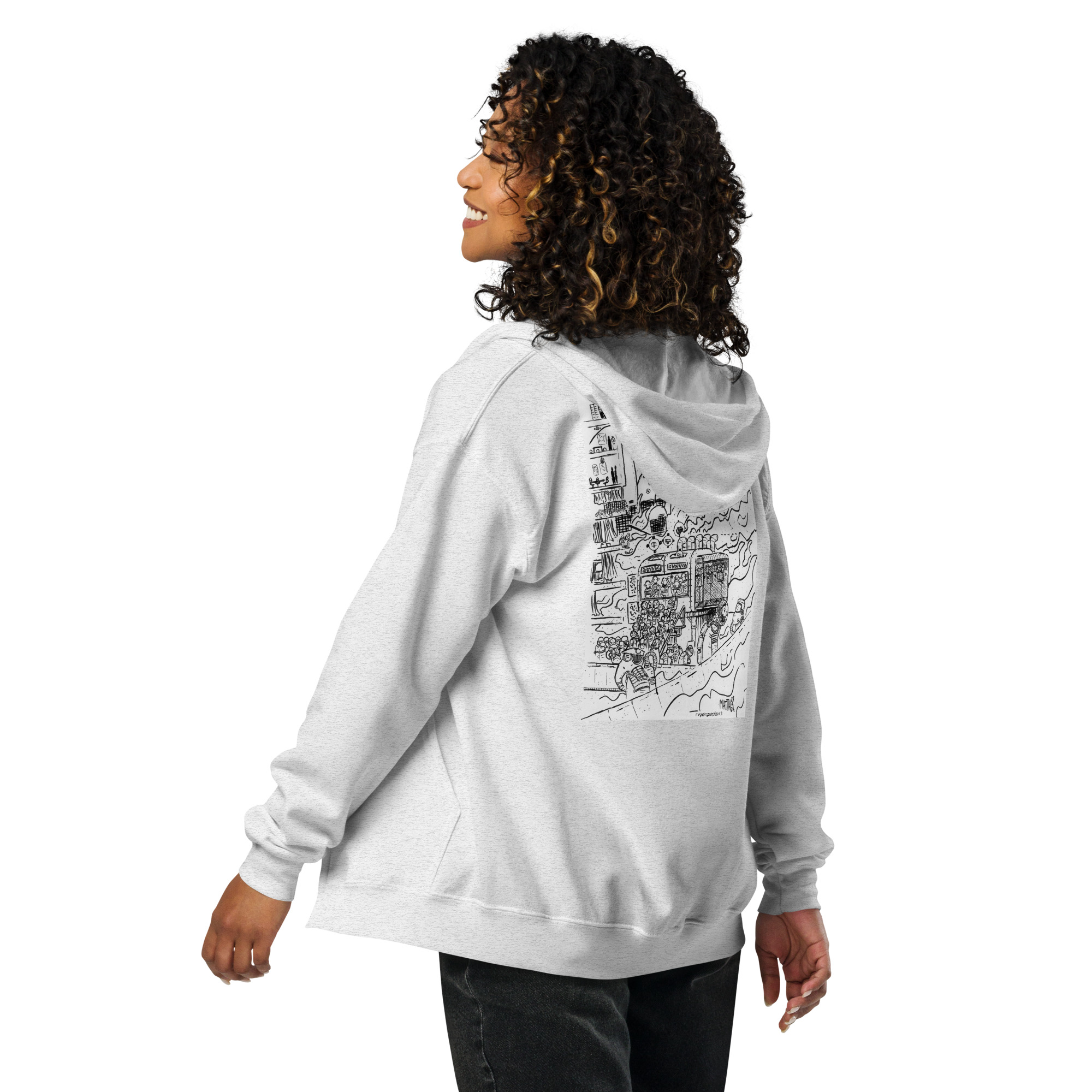 Designed with style and comfort in mind, this hoodie will quickly become your new favorite. It’s made from soft fleece inside and outside, with a sturdy metal zipper, convenient front pockets, and a hood with color-matched drawstrings.